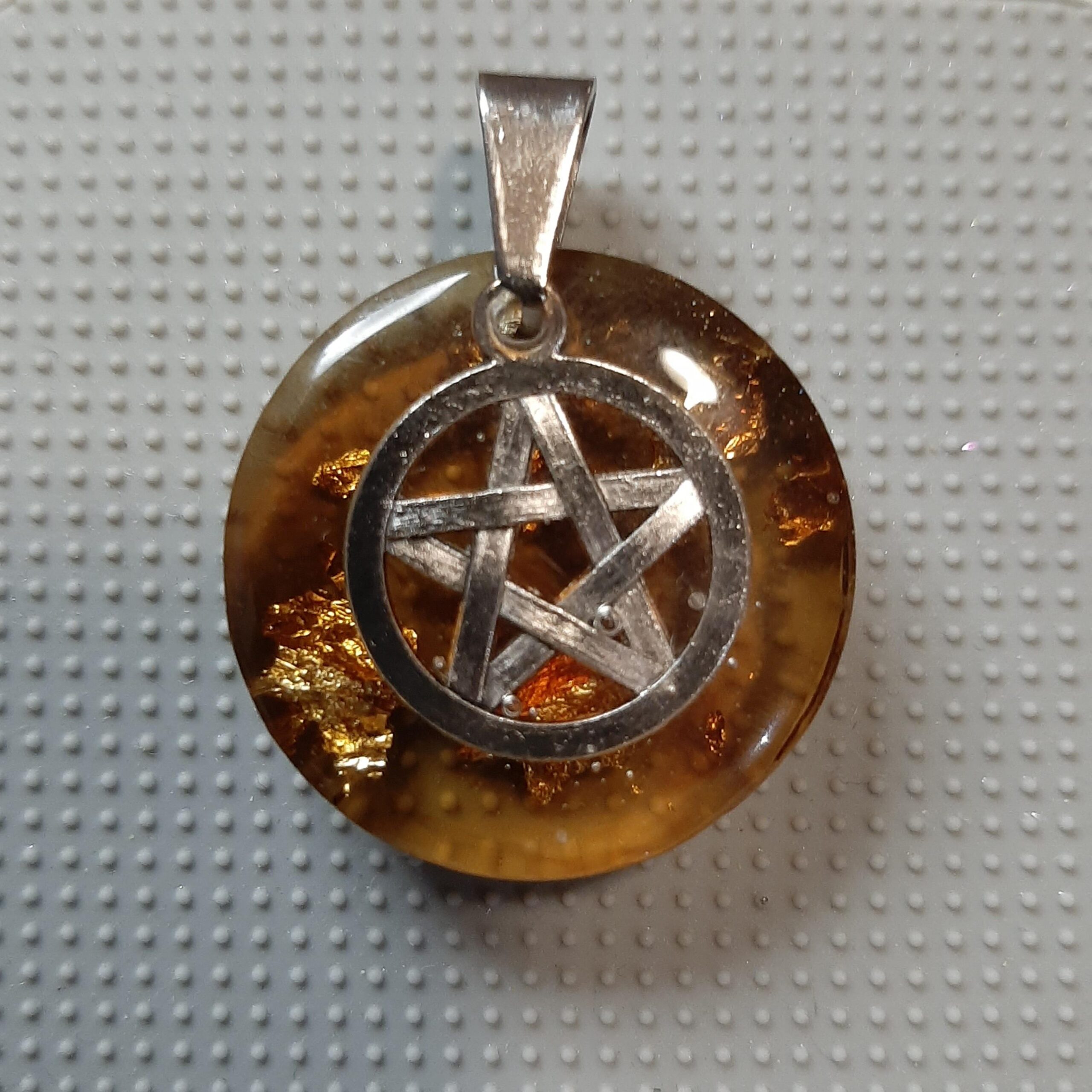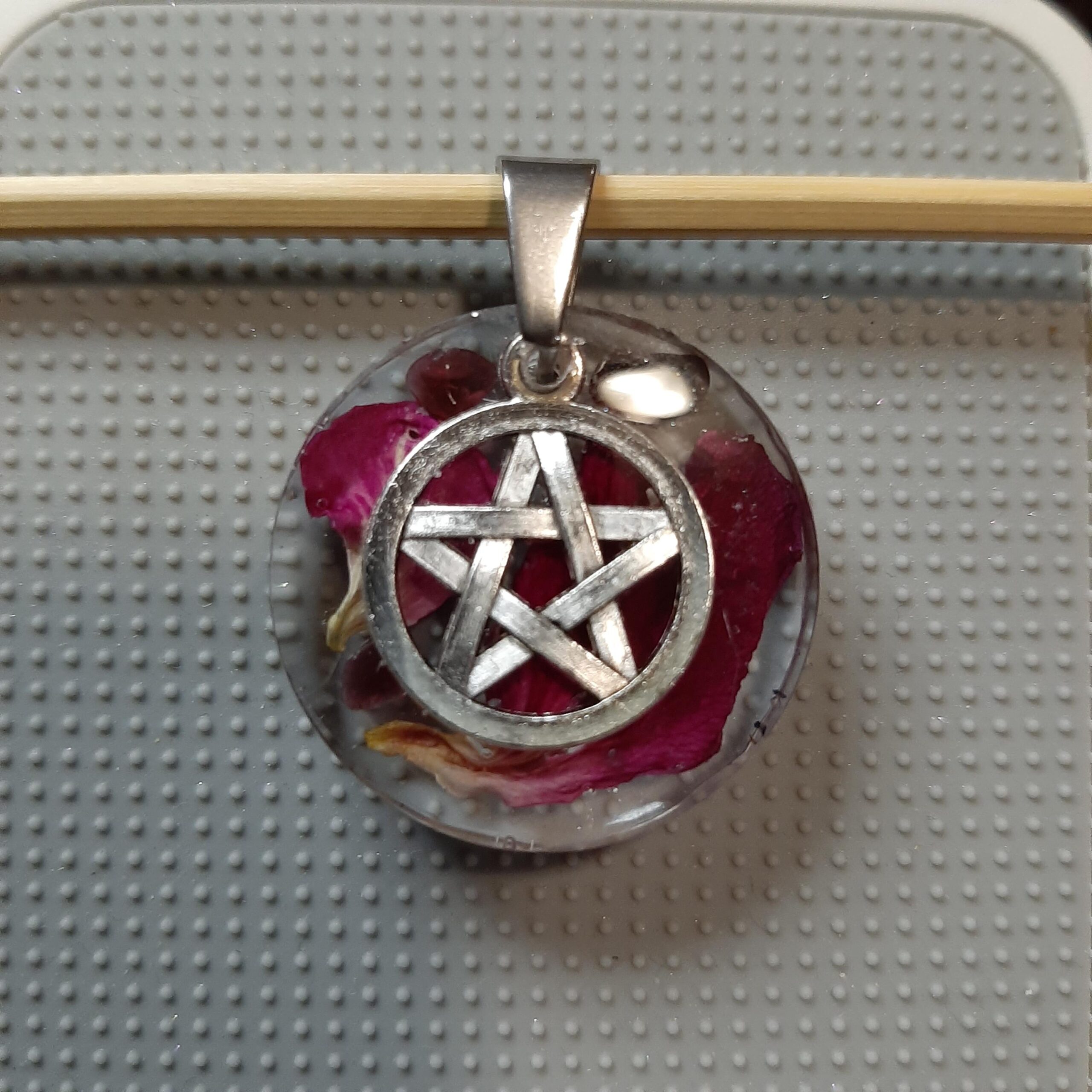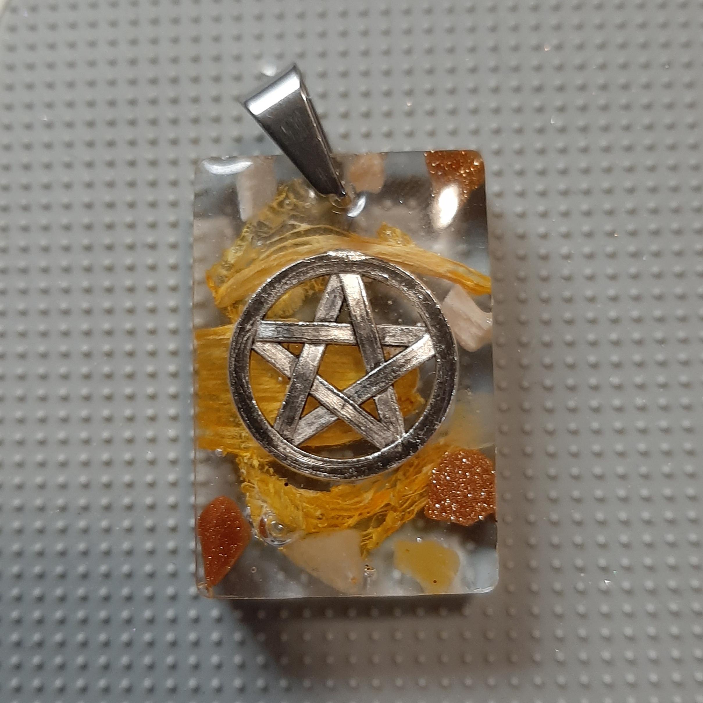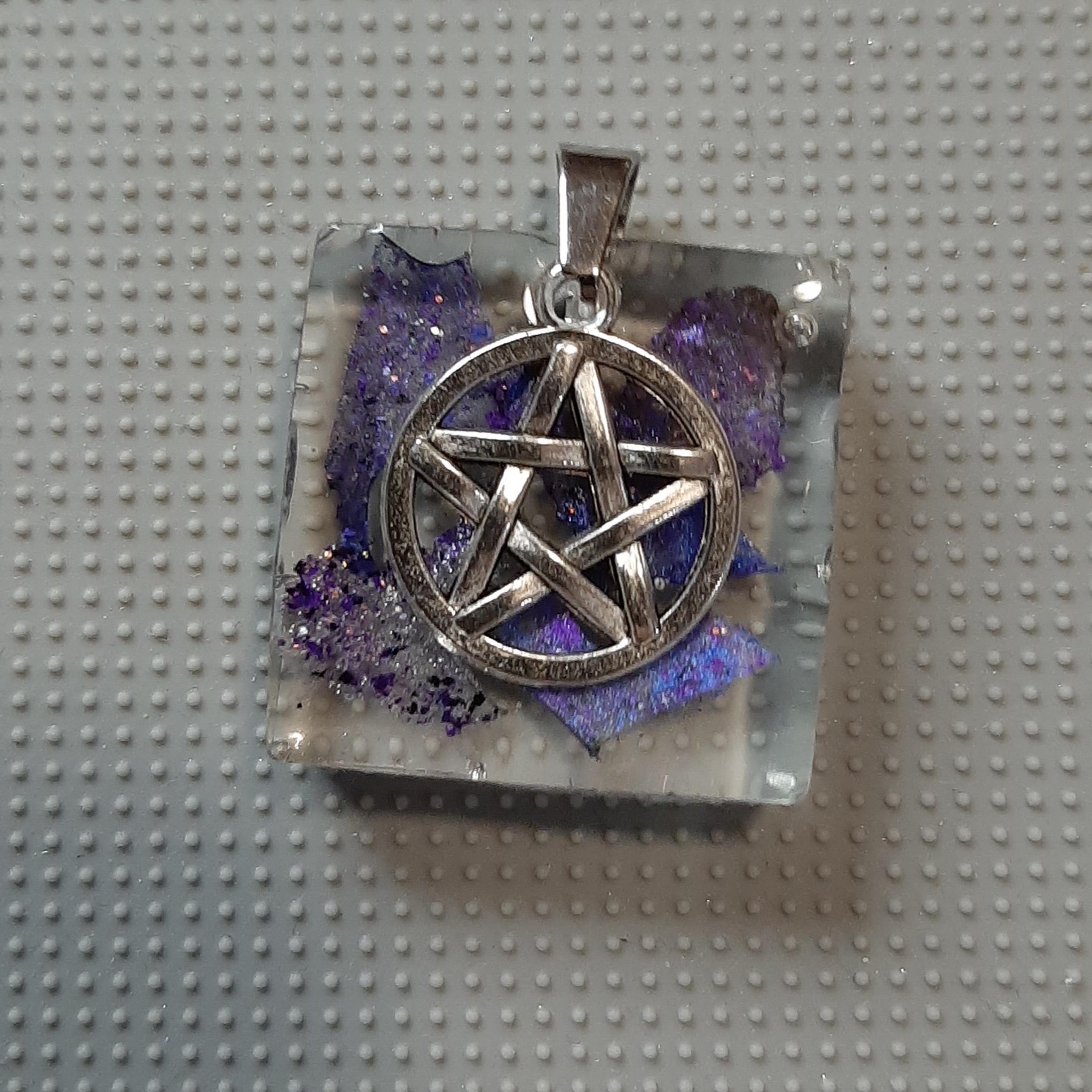 This beautiful resin pentacle pendant is a unique and stylish way to show your spiritual side. The pendant is made with a clear resin base and is filled with a variety of colorful glitters and charms. The pentacle is a powerful symbol of protection, balance, and enlightenment, and this pendant is sure to bring you good luck and prosperity.